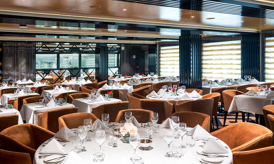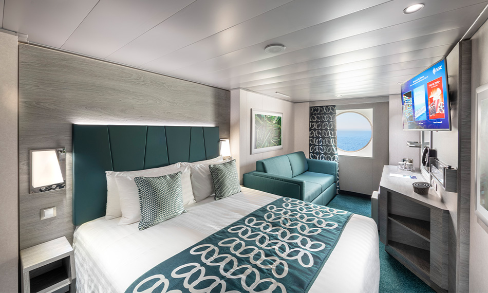 MSC Virtuosa cabins and suites combine comfort and premium amenities. Each room has air‑conditioning, a safe, interactive TV, phone, minibar, a wardrobe, a hairdryer and en‑suite bathroom with shower or bathtub. Beds can be configured as twins on request. Balcony cabins feature outdoor space and views. In the Yacht Club suites you’ll find extra perks like a private whirlpool bath, walk‑in wardrobes, 24‑hour butler service, free WiFi, and access to exclusive areas including a sun deck and Thermal Suite.