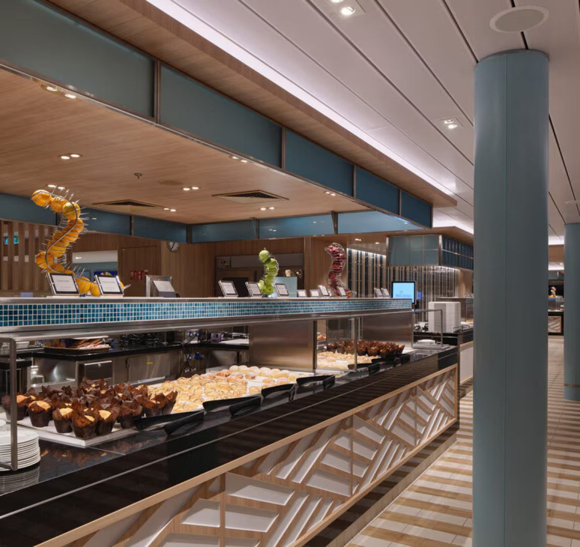 The Azura buffet is your one-stop shop for casual dining at sea, offering an extensive international menu to satisfy every craving.
