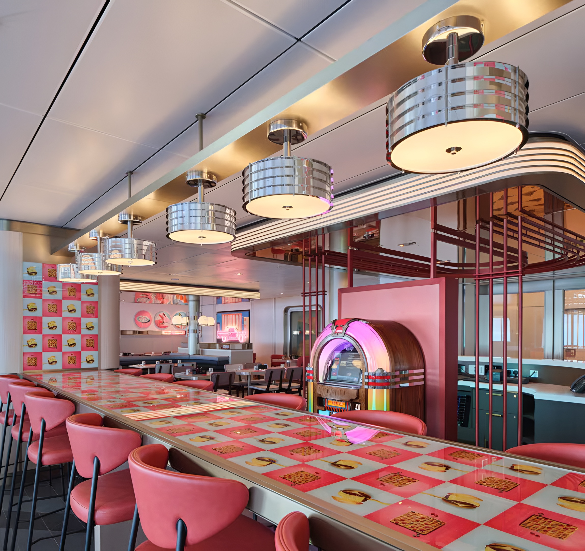 The Quays, which is included in your cruise, is a vibrant multi-venue dining piazza where you can enjoy a diverse selection of international cuisines under one roof. With live cooking stations, you can find everything from Asian stir-fries to classic British fish and chips.