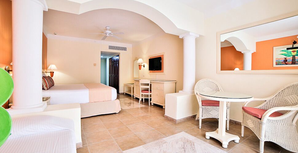 Dinner is taken care of by the buffet, which puts on theme nights, and three à la cartes. Chefs cook teppanyaki-style at the Asian restaurant. There’s also an Italian place that does pizza and pasta, as well as regional dishes like ricotta panzerotti – a savoury pancake dish. You'll also find a gourmet eatery that serves classy French cuisine. You can also book a table at three of the à la carte restaurants at the neighbouring Bahia Principe Grand Tulum Hotel.