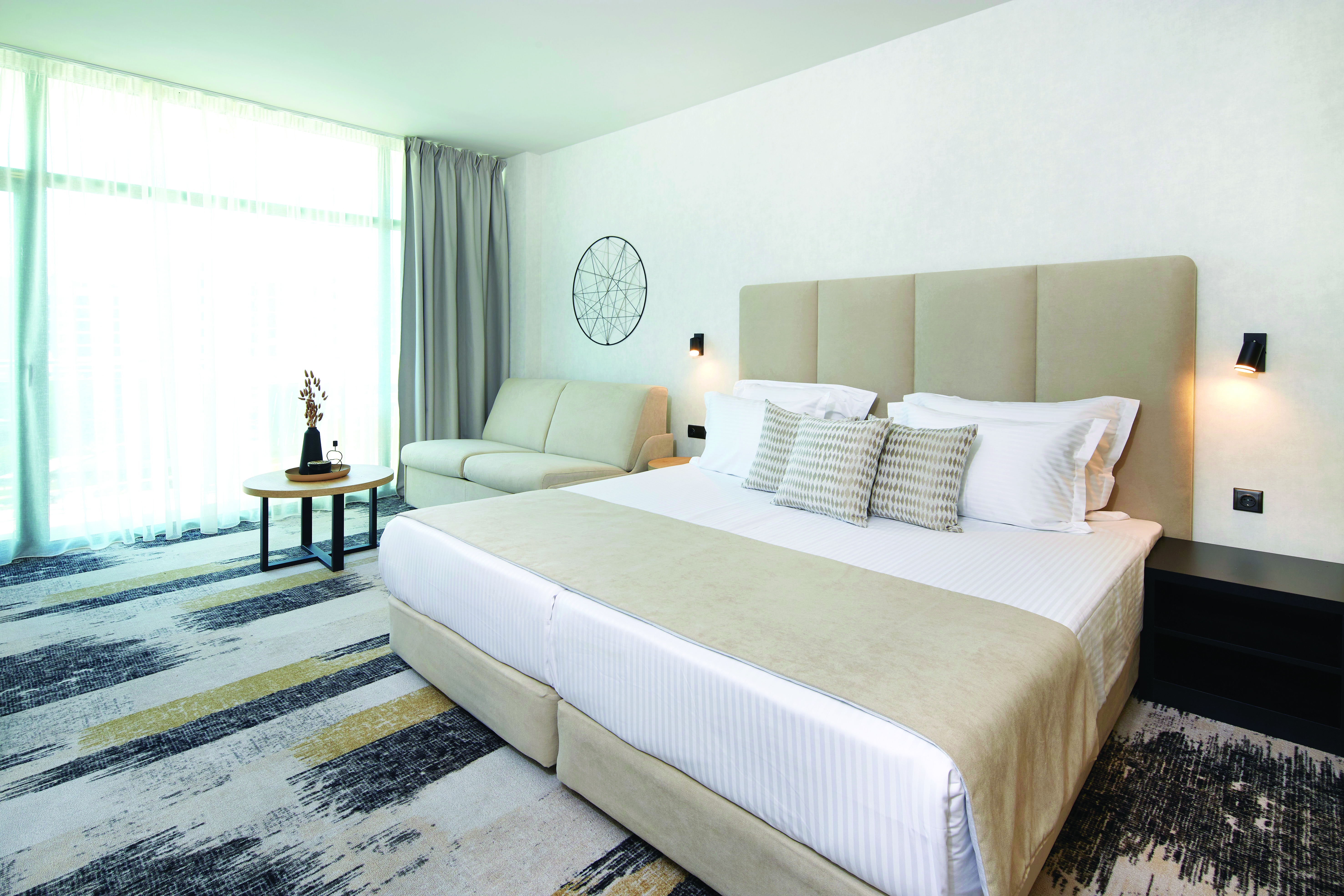 There's twin rooms, suites and junior suites available - all with air-conditioning, cable TV with limited English channels, free Wi-Fi and either a balcony or terrace. Upgrade to a suite or a junior suite for a more spacious room.