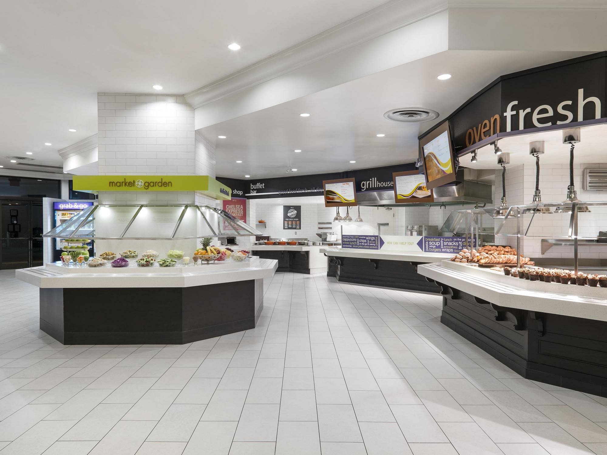 The Chelsea Hotel offers a variety of food, drink, and entertainment options for its guests. For dining, there are multiple on-site restaurants, a food court, and various bars, including the seasonal Chelsea Patio and the Express|o Coffee & Wine Bar.