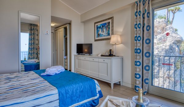 This hotel is in a great spot, 20 minutes from Taormina’s main street. And the cable car will take you to the beach.
