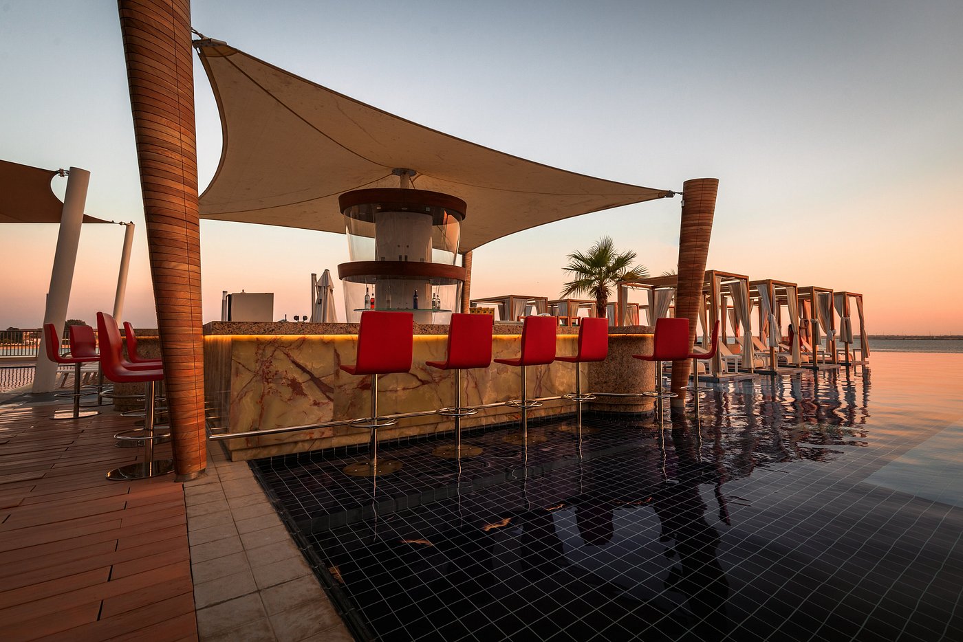 This luxury hotel in Abu Dhabi is located within the fashionable Al Bateen Marina, serving as a sophisticated waterfront retreat that provides the ultimate in comfort and luxury for both business and leisure travelers alike. Perfectly placed in the heart of Abu Dhabi, it offers easy access to Corniche Beach and is just moments away from an array of shopping malls. The inspiring nautical design, contemporary streamlined architecture and bespoke private villas radiate the promise of an experience that awaits within. From the moment you set foot in the hotel, you know you are taking the first steps on a truly unique journey. A magnificent colonnade frames the impressive Marina view through into the lobby, where the hotel’s elegant modern style reveals itself further. As one of the finest 5-star hotels in Abu Dhabi, Royal M Hotel By Gewan Abu Dhabi offers a seamless blend of sophistication, luxury, and breathtaking waterfront views.