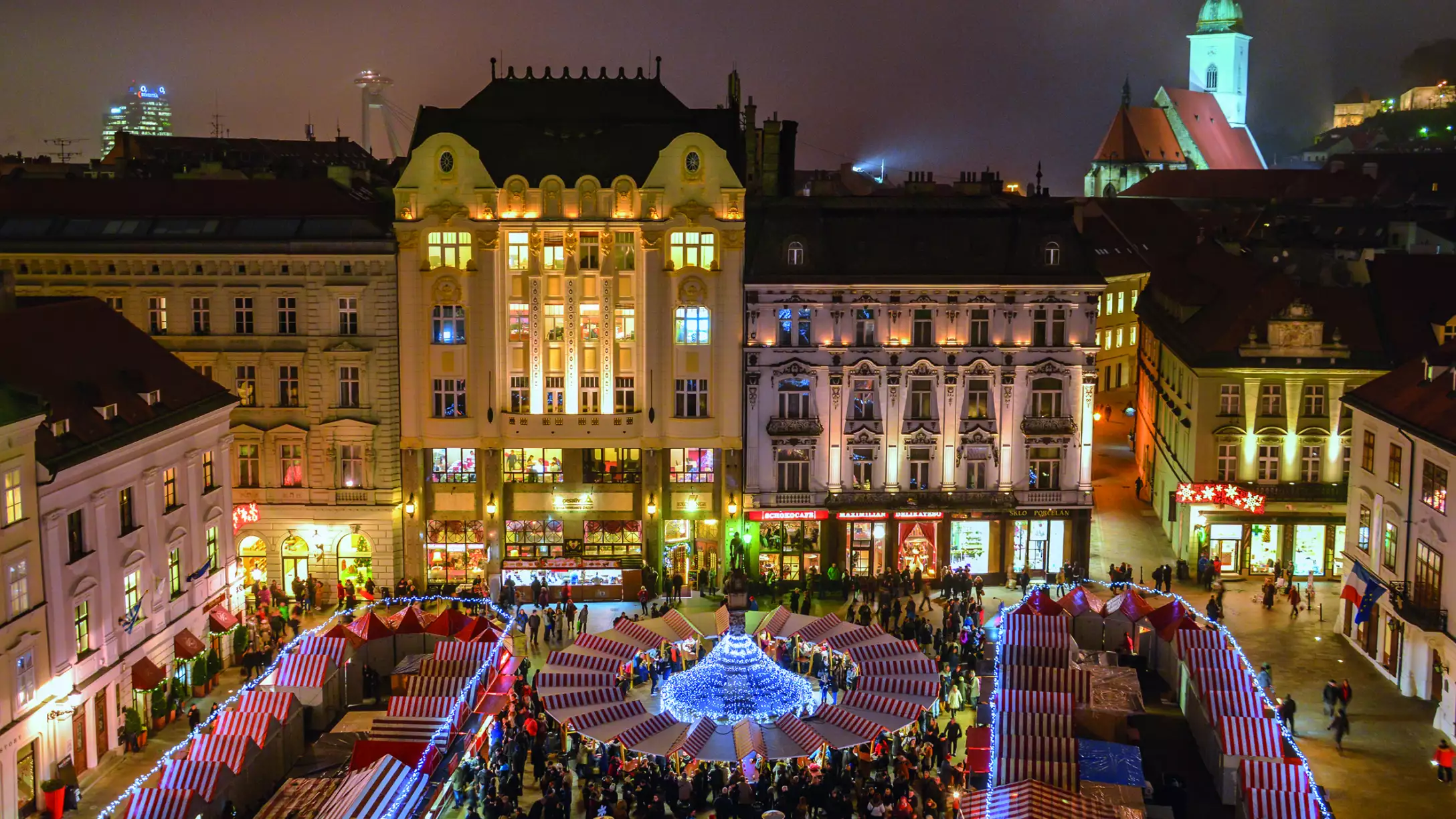 Enjoy a guided tour of Bratislava, then visit Christmas markets after lunch.